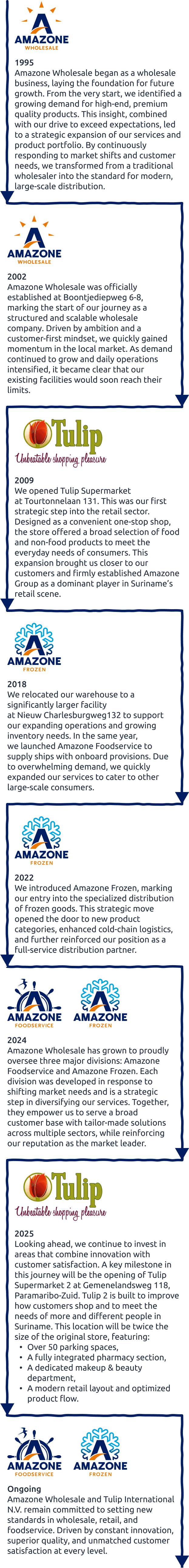 To become the top leader in Suriname's wholesale and retail industry. We aim to establish ourselves as the go-to organization for quality products, customer satisfaction and industry innovation. As we continue to grow, we aim to set new standards of excellence in our service, ensuring that our customers consistently enjoy the highest level of experience and value.