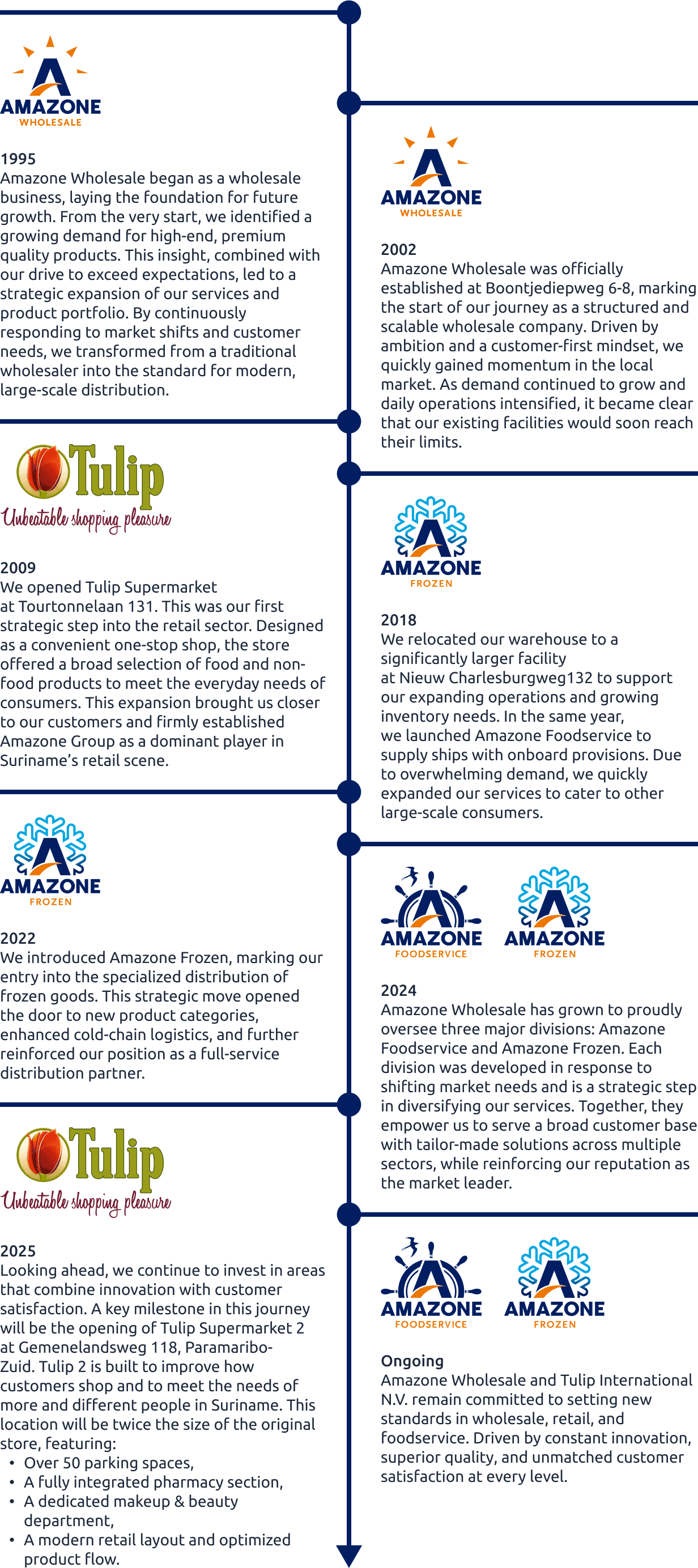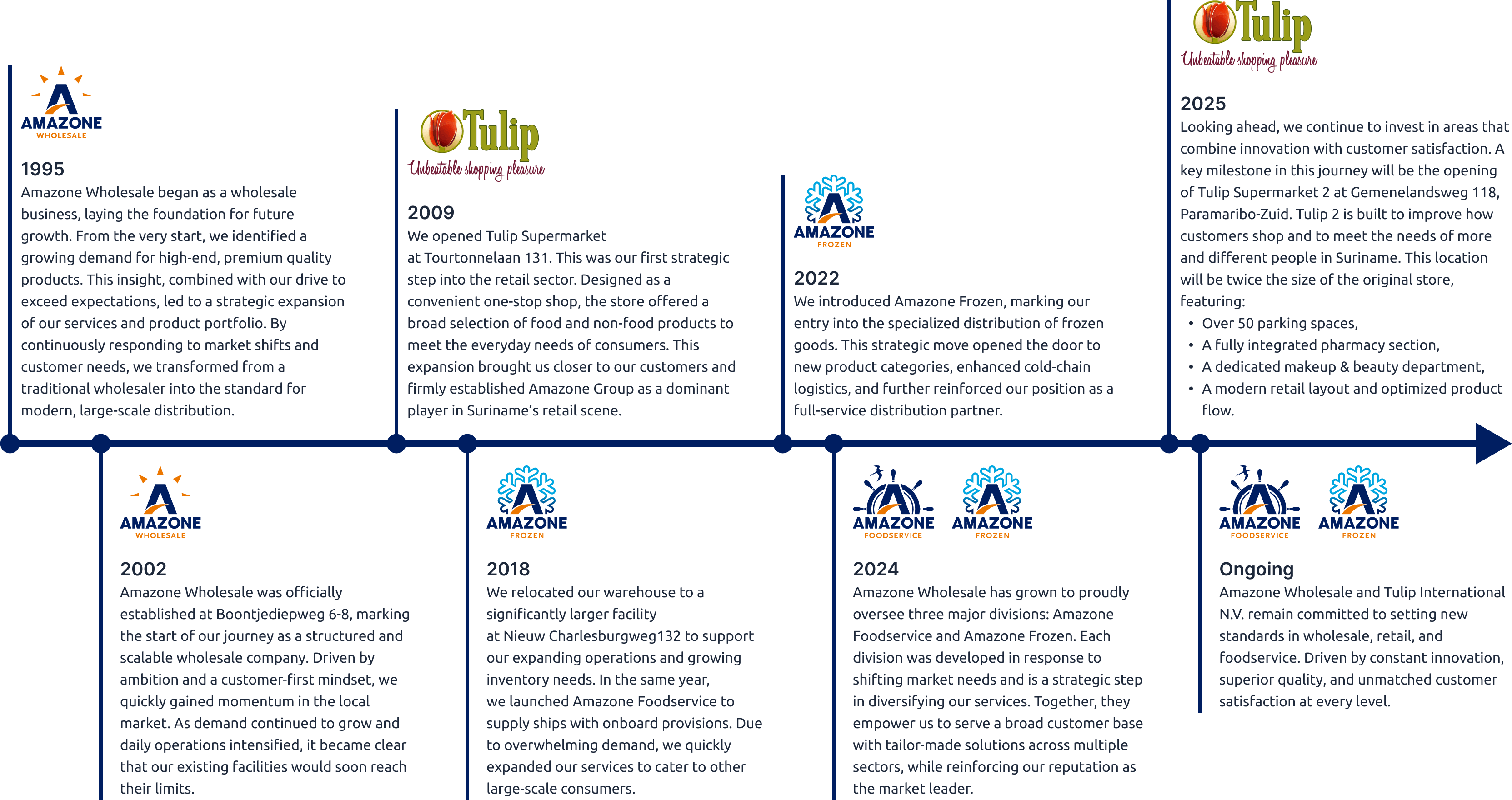 Amazone Wholesale is the leading force in wholesale and distribution of food and non-food products in Suriname. We lead the industry by setting the highest standards in service, speed and supply.